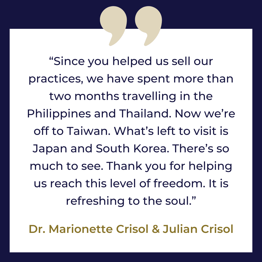 The decision to sell your practice is one that requires clarity and conviction in your professional, personal, and financial future. After working with hundreds of Canadian dentists and documenting the process and common challenges in the practice sale journey, the intellectual property created was meticulously curated into a resource to support outcomes upon sale.